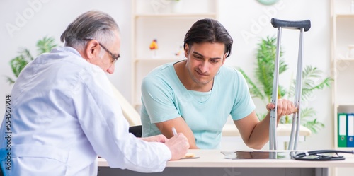 © Elnur, Obraz premium Young leg injured male patient visiting old doctor