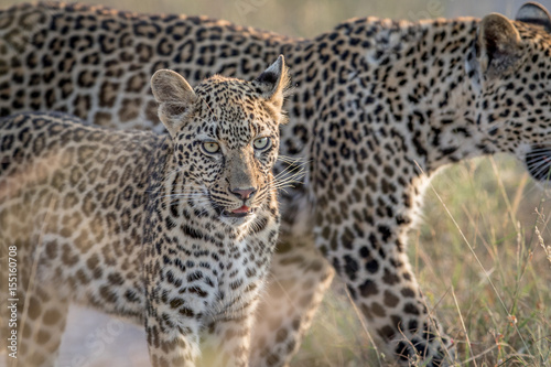 Obraz premium Young Leopard and mother walking.