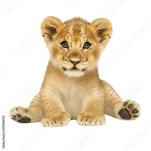 © DANUSHKA, Obraz premium Young lion cub sitting playful cute bright studio photoshoot