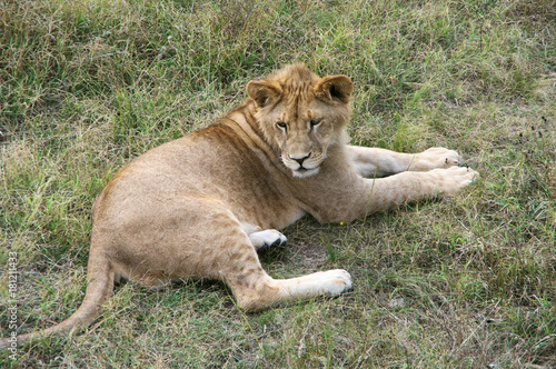 © Svetlana Lukienko, Obraz premium Young lion in grass
