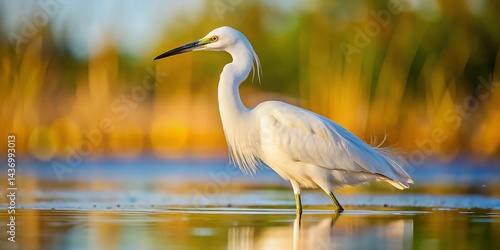 © Supittra, Obraz premium Young Little Egret Chick in Shallow Water, Wildlife Photography
