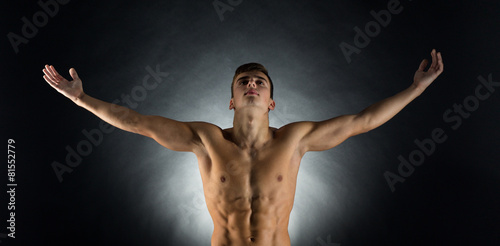 © Syda Productions, Obraz premium young male bodybuilder with raised hands