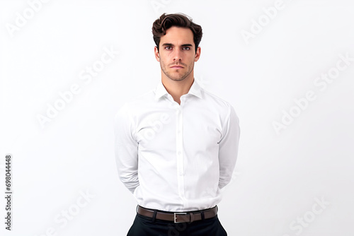 Fototapeta premium Young male confident businessman, white background isolate. Successful...