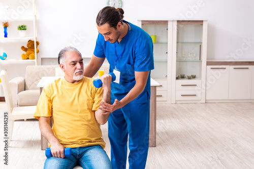 © Elnur, Obraz premium Young male doctor visiting old patient at home