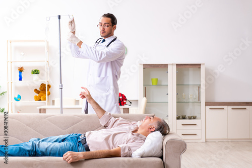 © Elnur, Fototapeta premium Young male doctor visiting old patient at home