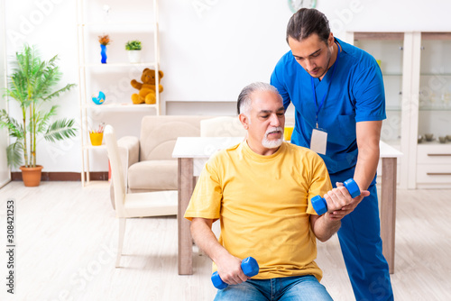 © Elnur, Obraz premium Young male doctor visiting old patient at home