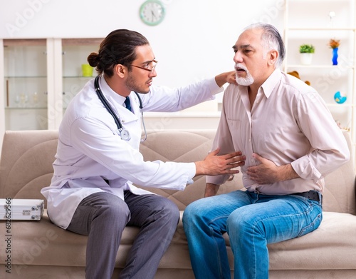 Obraz premium Young male doctor visiting old patient at home