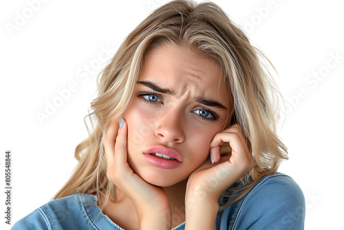 © Irfan, Fototapeta premium young male holding her cheek with hand, suffering from bad tooth ache on isolated transparent background