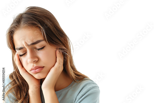 © Irfan, Fototapeta premium young male holding her cheek with hand, suffering from bad tooth ache on isolated transparent background