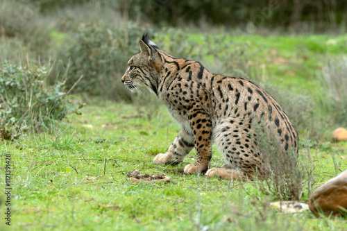 © Jesus, Fototapeta premium Young male Iberian Lynx in a Mediterranean oak and pine forest at first light of sunrise