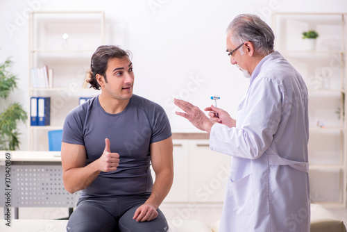 © Elnur, Obraz premium Young male patient visiting old doctor traumatologist