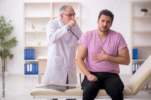 Obraz premium Young male patient visiting old male doctor