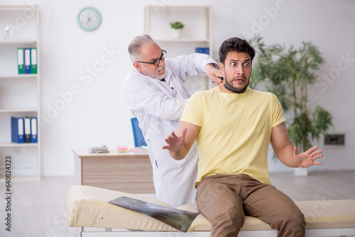 Obraz premium Young male patient visiting old male doctor
