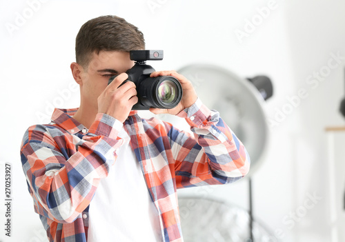 Obraz premium Young male photographer working in studio