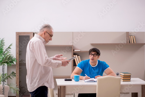 Obraz premium Young male student and his grandfather at home
