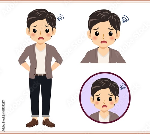 © su_cocoroe, Fototapeta premium Young male student in a cardigan