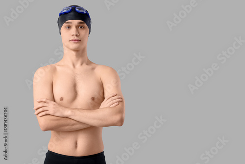 © Pixel-Shot, Obraz premium Young male swimmer on light background