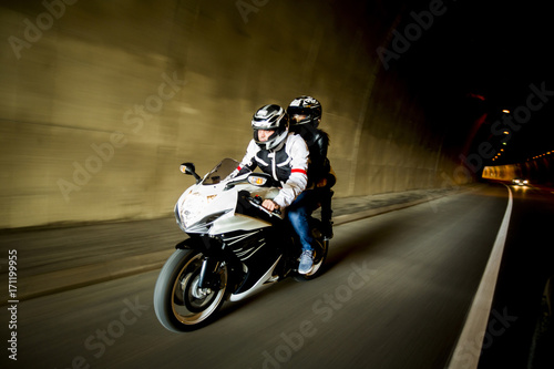 Obraz premium Young man and a woman on a motorcycle