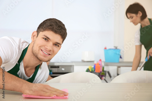 © Africa Studio, Fototapeta premium Young man cleaning kitchen table