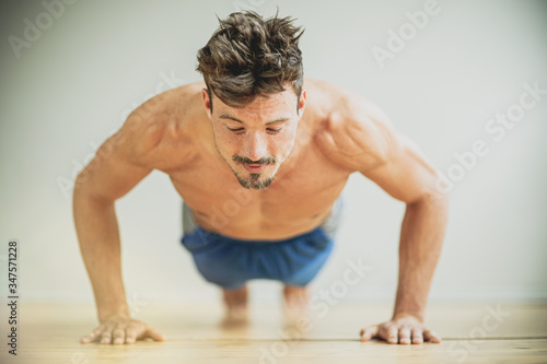 Obraz premium young man doing push ups