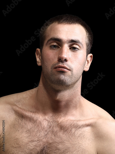 © ASDF, Fototapeta premium young man face expressions over black background