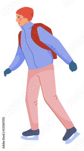 Fototapeta premium Young man ice skating. Happy guy in warm clothes