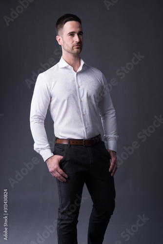 Fototapeta premium young man in a white shirt and dress pants