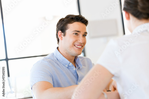 Obraz premium Young man in casual in office