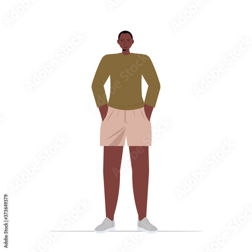 Fototapeta premium young man in casual trendy clothes african american male cartoon character standing pose full length vector illustration