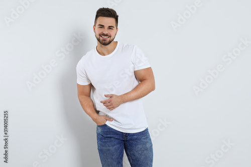 © New Africa, Fototapeta premium Young man in stylish jeans on light background