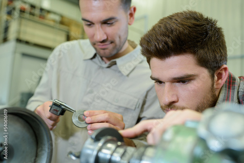 © auremar, Fototapeta premium young man in technical vocational training with teacher
