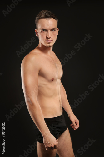 © Africa Studio, Naklejka premium Young man in underwear on black background