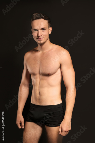 © Africa Studio, Fototapeta premium Young man in underwear on black background