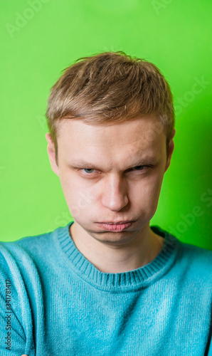 © aeroking, Obraz premium young man inflate his cheeks