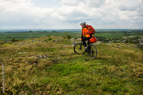© Aleksey, Obraz premium Young man is riding bicycle outside. Healthy Lifestyle.