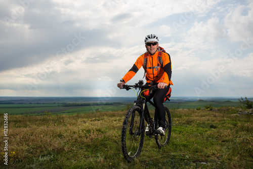 © Aleksey, Naklejka premium Young man is riding bicycle outside. Healthy Lifestyle.