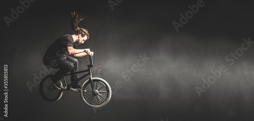 © Photocreo Bednarek, Obraz premium Young man jumping on BMX bicycle