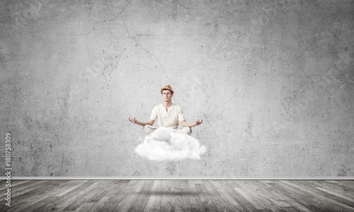Fototapeta premium Young man keeping mind conscious.