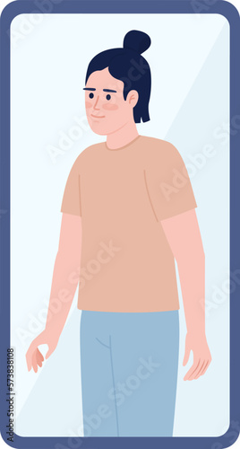 © IMG visuals characte, Fototapeta premium Young man on mobile phone screen flat concept vector spot illustration. Editable 2D cartoon character on white for web design. Dating application user creative idea for website, mobile, magazine