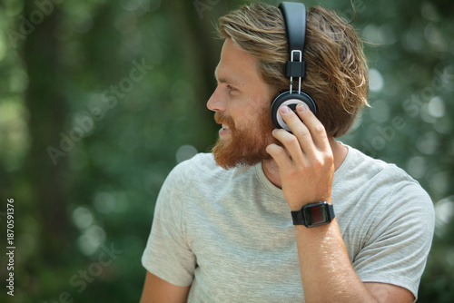 Obraz premium young man outdoors wearing headphones