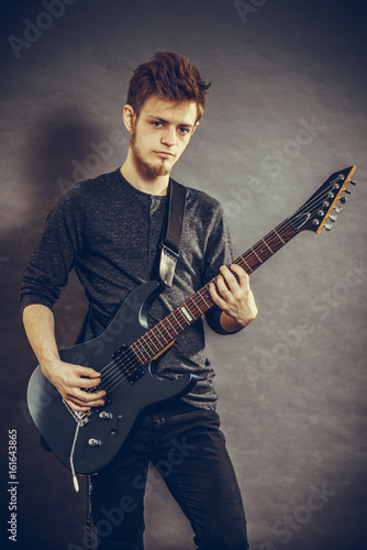 Obraz premium Young man playing electric guitar
