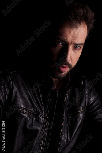 Obraz premium young man posing on dark studio background.