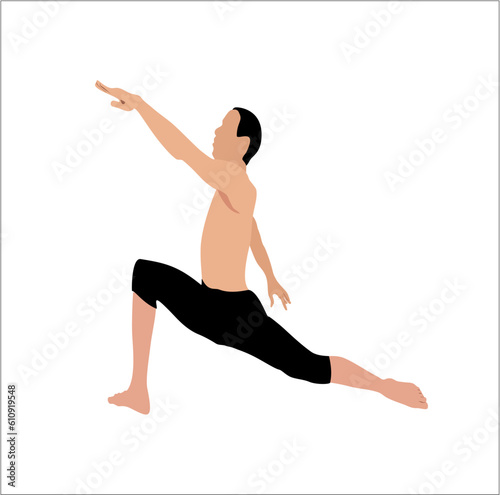© LazyArtist, Obraz premium Young man practicing meditation flat vector illustration. Person character doing yoga exercises for mental and physical health, clear mind, harmony. Health, yoga, meditation concept for design