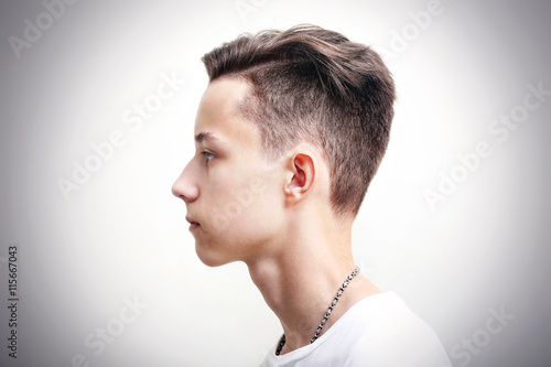 © Pavel Kubarkov, Obraz premium Young man profile face over gray background