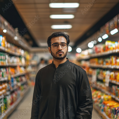 © PIX OF WORLD AI, Fototapeta premium Young man purchasing at super market
