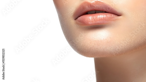 © Lorraine, Obraz premium young man's face close-up, acne scar details, calm and neutral expression, realistic skin texture, isolated on white background