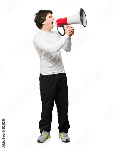 © Krakenimages.com, Fototapeta premium Young Man Shouting Through Megaphone