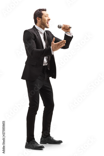 Obraz premium Young man singing on a microphone
