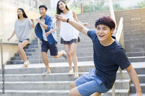 Obraz premium Young man sliding down banister on steps