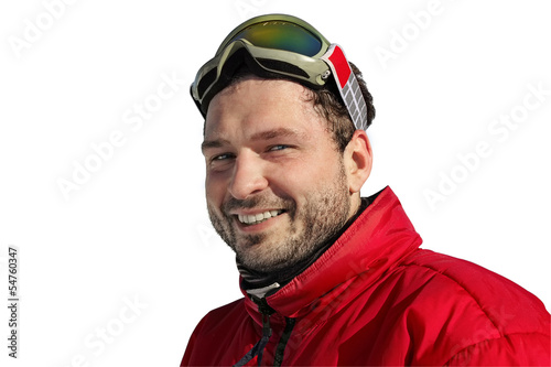 © kosobu, Obraz premium young man smiles in winter, snowboard
